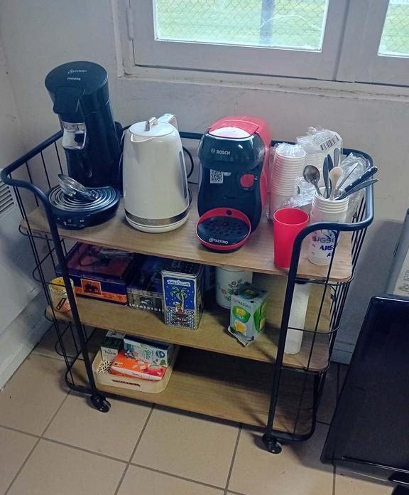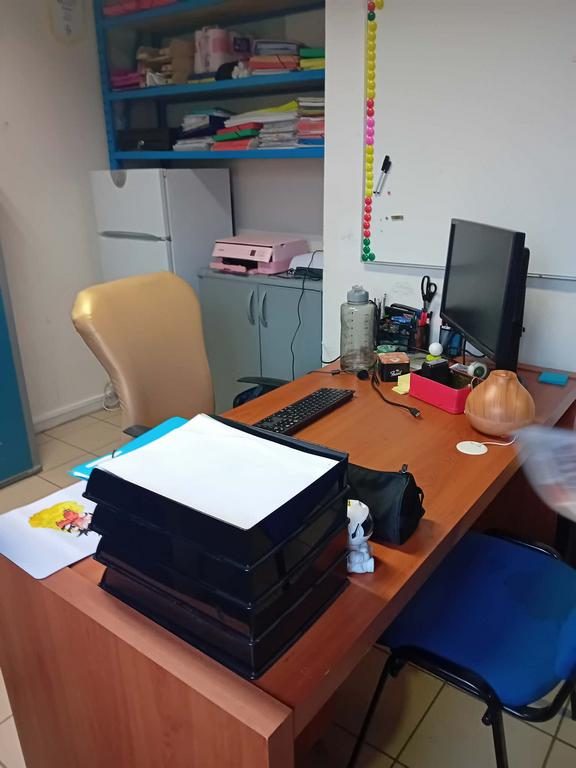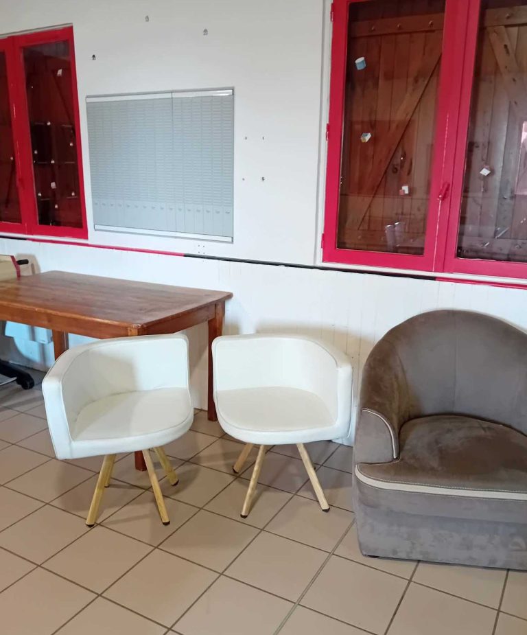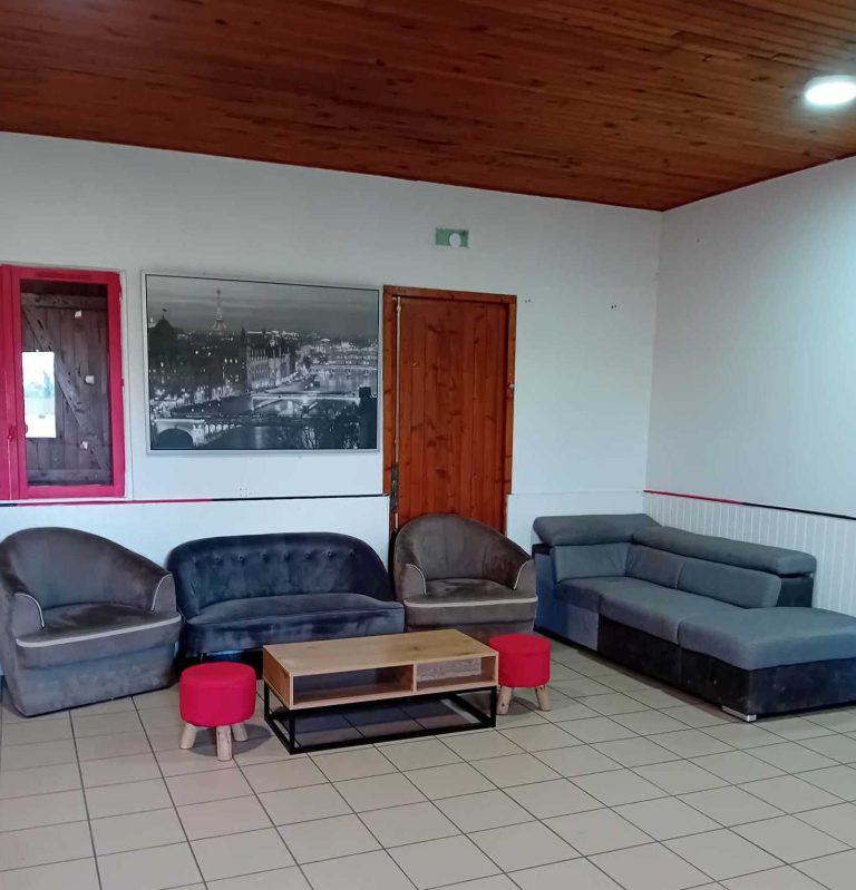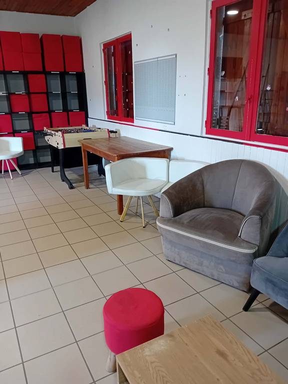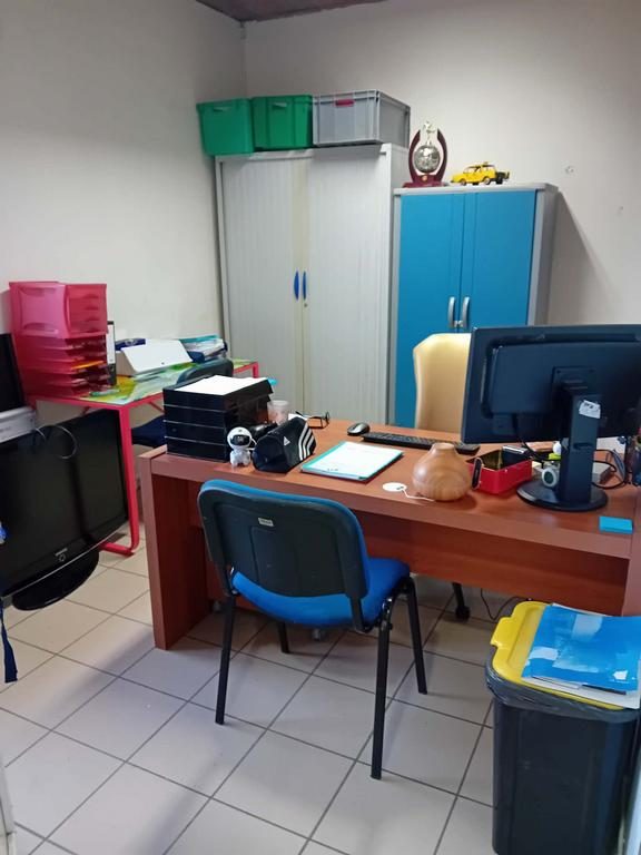 Un coin détente spacieux, un bureau pour l'administratif, une cuisine et une réserve.