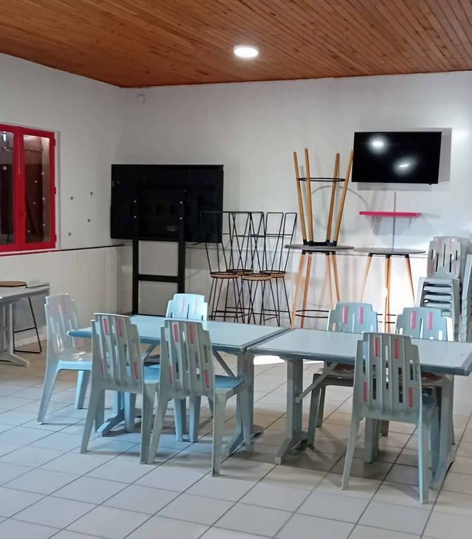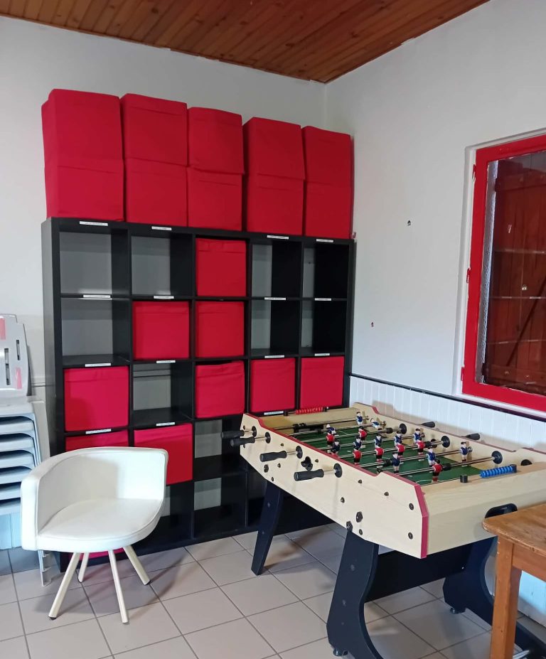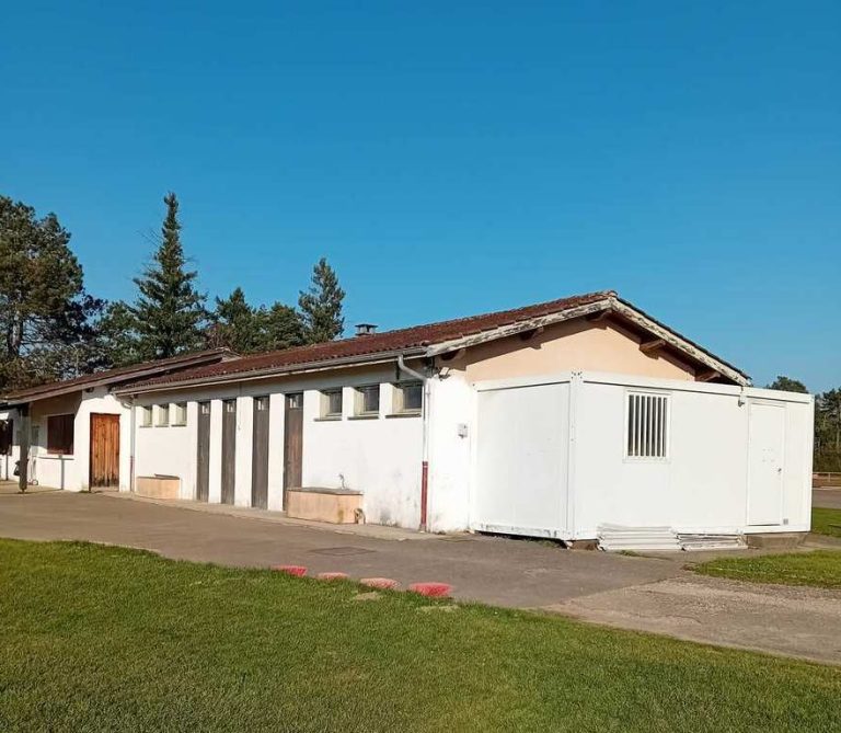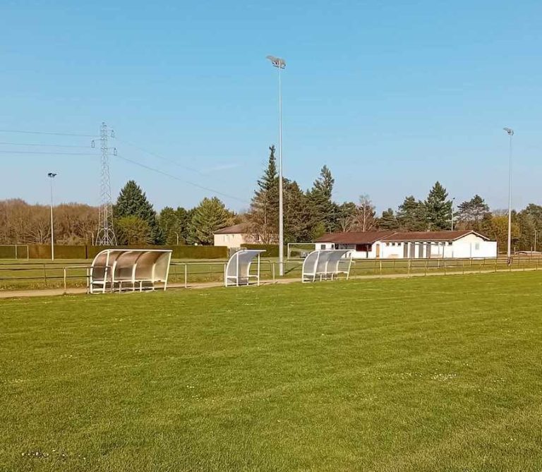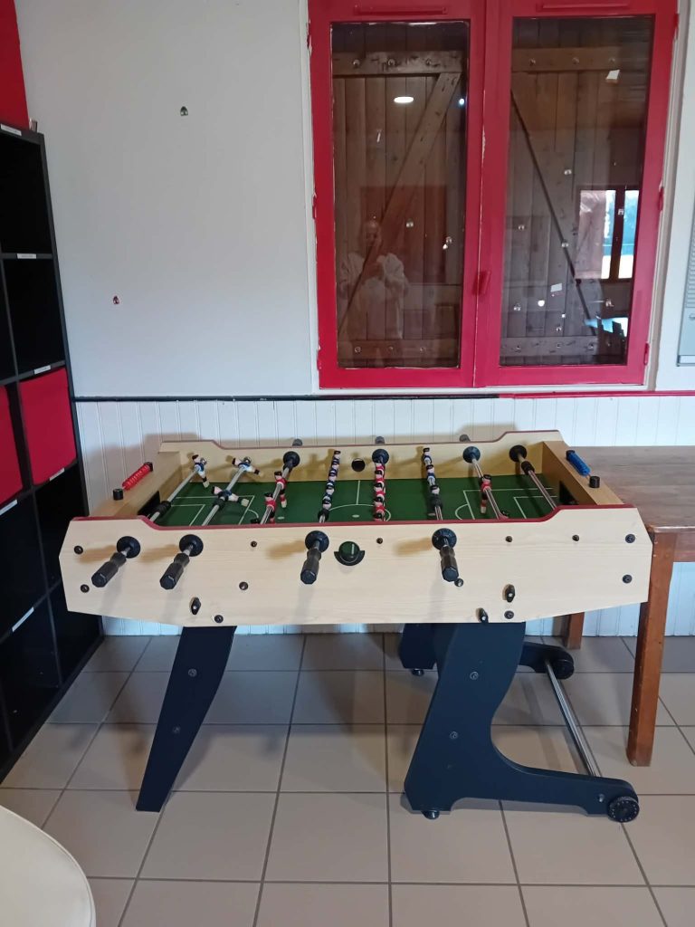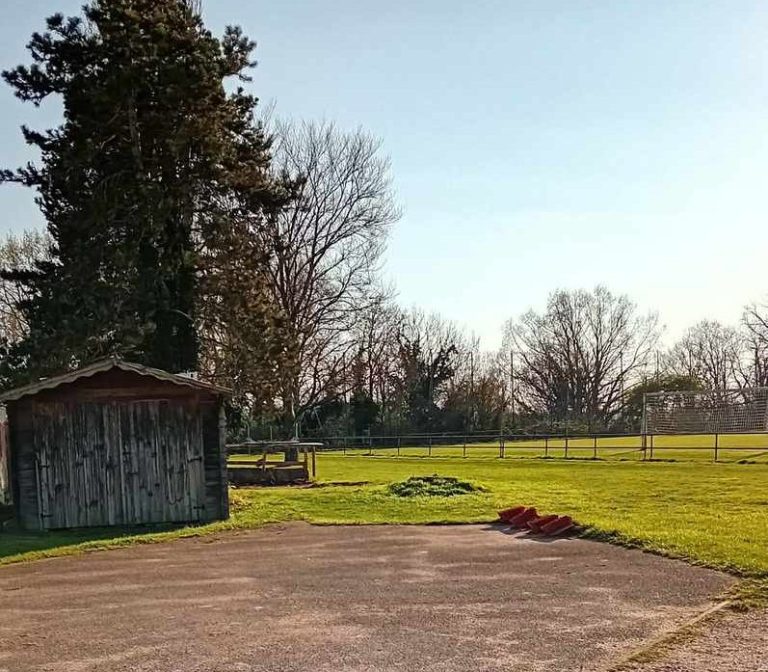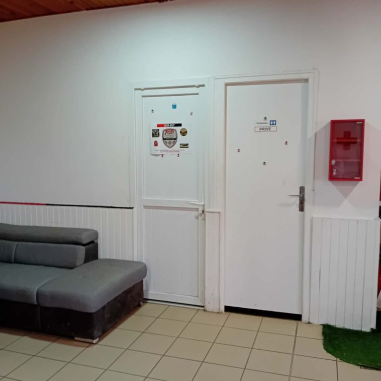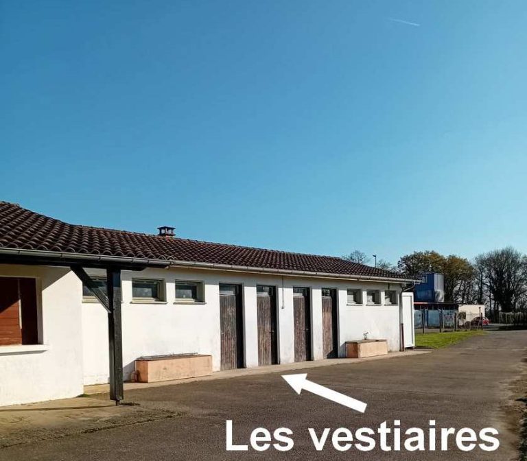 Au bout du bâtiment du club house , local pour rangement du matériel (ballons, haies de vitesse, cônes, piquets de slalom ....)