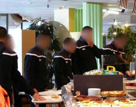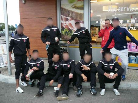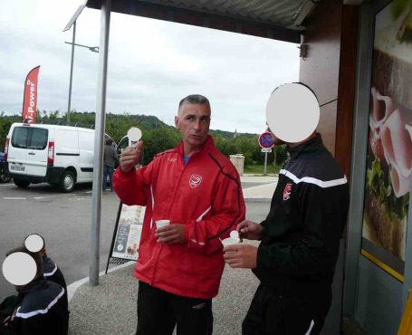Une pause repas bien méritée sur la route du retour dans une cafétéria de l'autoroute. Une pause largement méritée après notre belle victoire à l'extérieur par 2 buts à 1 qui nous qualifie pour le 4ème tour de la Coupe de France. Une bonne façon de décompresser et de bien se détendre avant de reprendre la route et de rentrer à la maison le sourire aux lèvres !