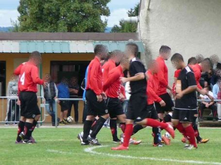 Début de la rencontre entre le Football Olympique Bourg en Bresse (01) et l'Union Sportive Beaumontoise (26)