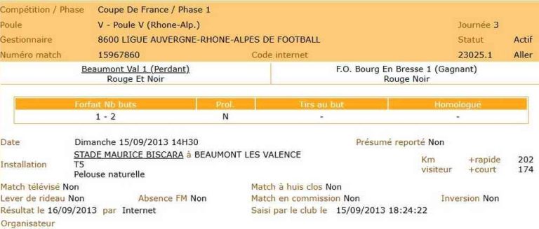 (Victoire du F.O.B : 2 à 1)