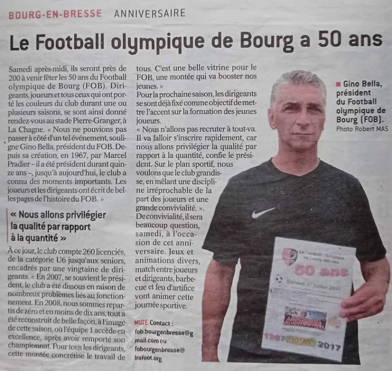 Un bel anniversaire avec les licenciés, dirigeants, parents pour l'occasion nous avons réunis des anciens présidents du club. Et également invité M. Jean François Debat (maire de Bourg en Bresse) Mme Françoise Courtine (adjointe aux sports) M. Jean François Jannet (Président du district de l'Ain de football) mais aussi le journal Le Progrès représenté par M. Robert Mas ainsi que M. Lafleur (Président de l'E.A.B) venu en voisin mais aussi M.Tisseuil et M.Terminal (gardiens du site de la Chagne) et beaucoup d'autres. Un grand festin offert à tous, un gâteau "spécial" pour l'occasion dégusté avec appétit... Une journée animée par Samy (dirigeant du club) qui pour l'occasion s'est transformé en D.J et qui s'est illustré aux platines. Et pour conclure cette journée exceptionnelle un feu d'artifice à été tiré depuis notre terrain d'honneur.