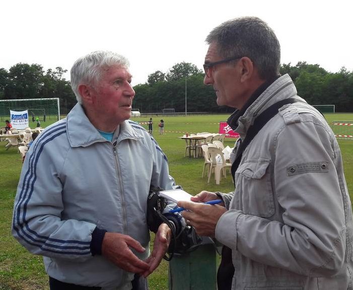 M. Marcel Pradier (ancien Président du club pendant 15 ans de 1967 à 1982) racontant sa grande expérience et les anecdotes du début en discussion avec le journaliste du journal Le Progrès M. Robert Mas